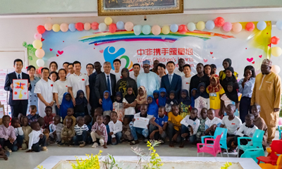 根据彭丽媛教授与非洲第一夫人发展联合会共同倡议,5月31日,中国驻塞内加尔使馆与中国援塞医疗队举办“中非携手暖童心”活动,走访慰问塞内加尔达莱·塞林涅·萨里奥·姆巴克孤儿院,向孤儿院儿童捐赠学习用品、玩具、食品、药品和卫生用品等物资,中国医疗队现场为孩子们进行了义诊。中国驻塞内加尔大使肖晗,塞内加尔总统卫生顾问、第一夫人领导的服务塞内加尔基金会代表马马杜·巴博士、中国驻塞内加尔使馆韩晓飞参赞等出席活动。